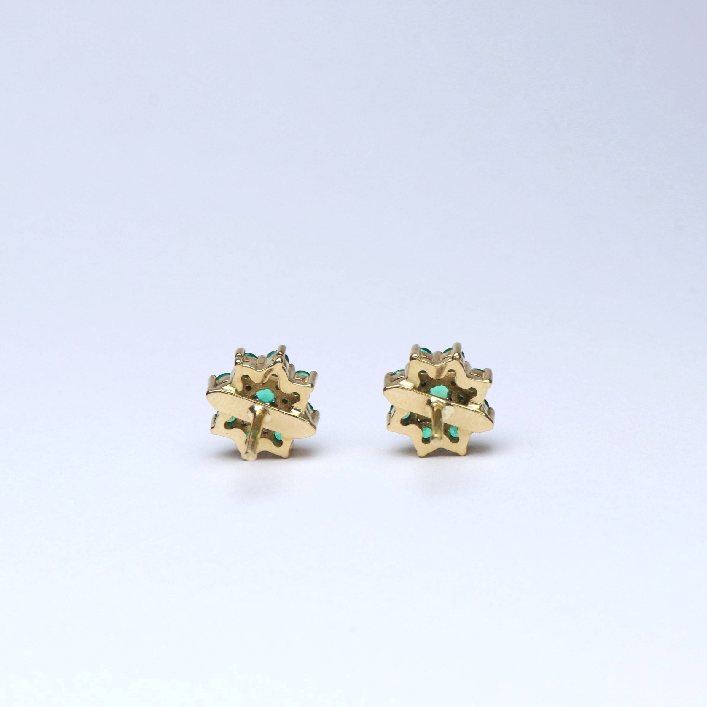 The design, with a base in 18K gold, highlights the beauty of the crystalline and shiny stones, creating a fascinating glow. Despite their size, the emeralds are presented with exquisite delicacy, making these earrings a unique and brilliant piece.