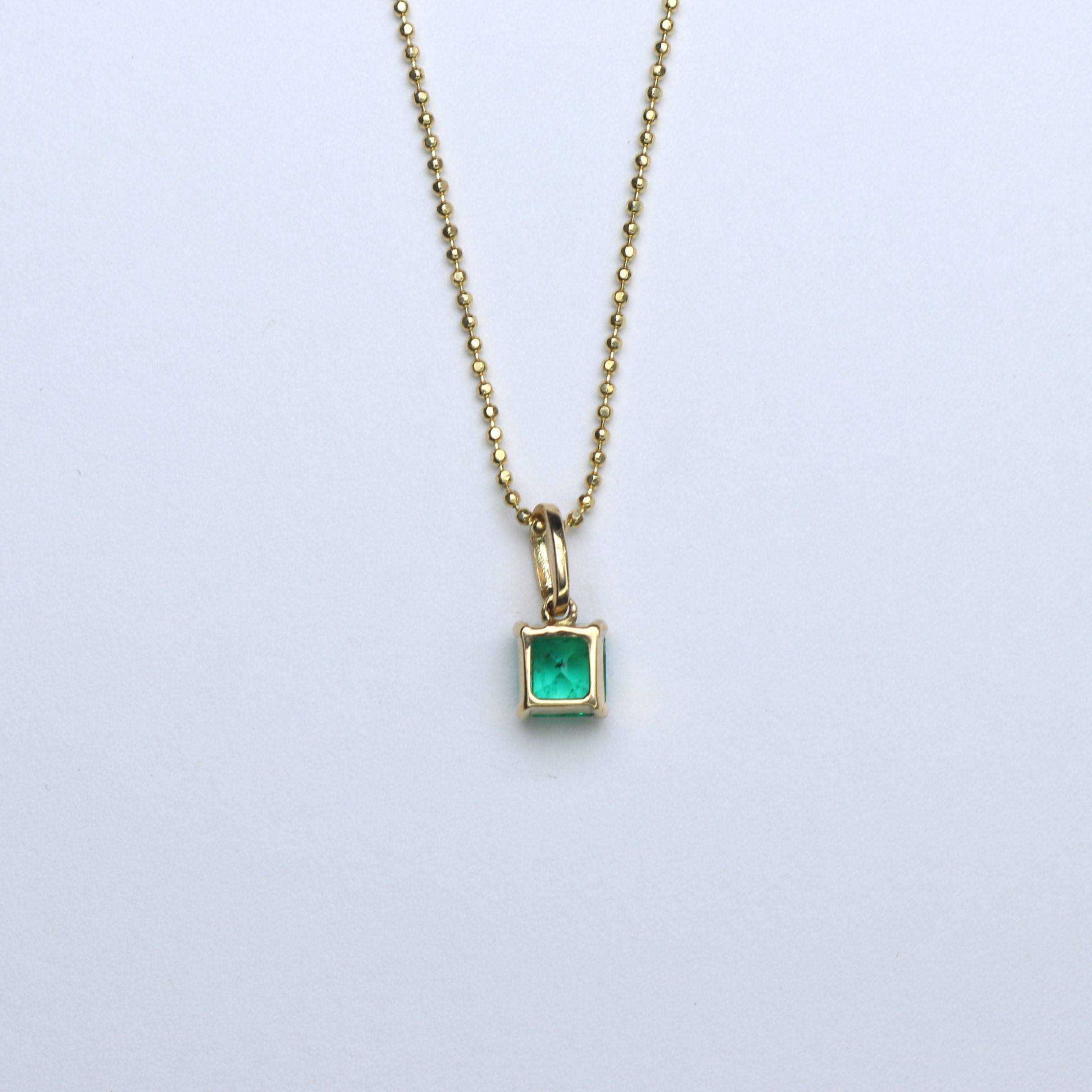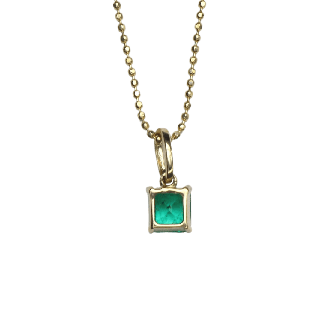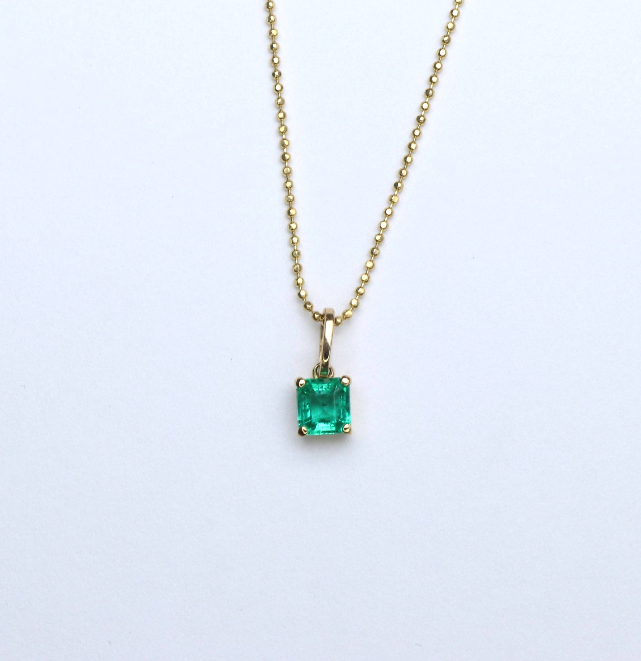 Explore timeless elegance with this exclusive square pendant, crafted in 18K gold and adorned with a natural emerald of incomparable beauty, from the ancient and legendary mines of Boyacá, Colombia.